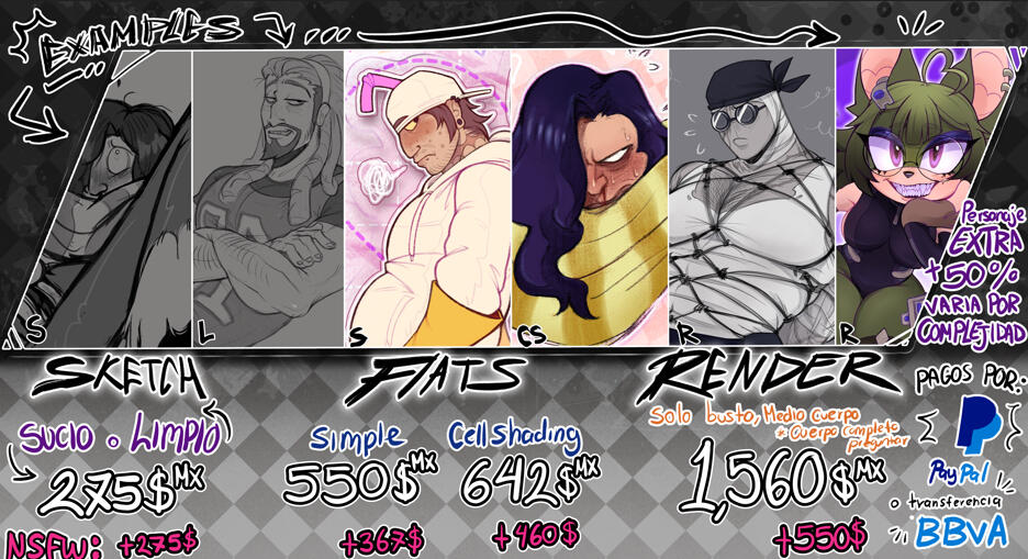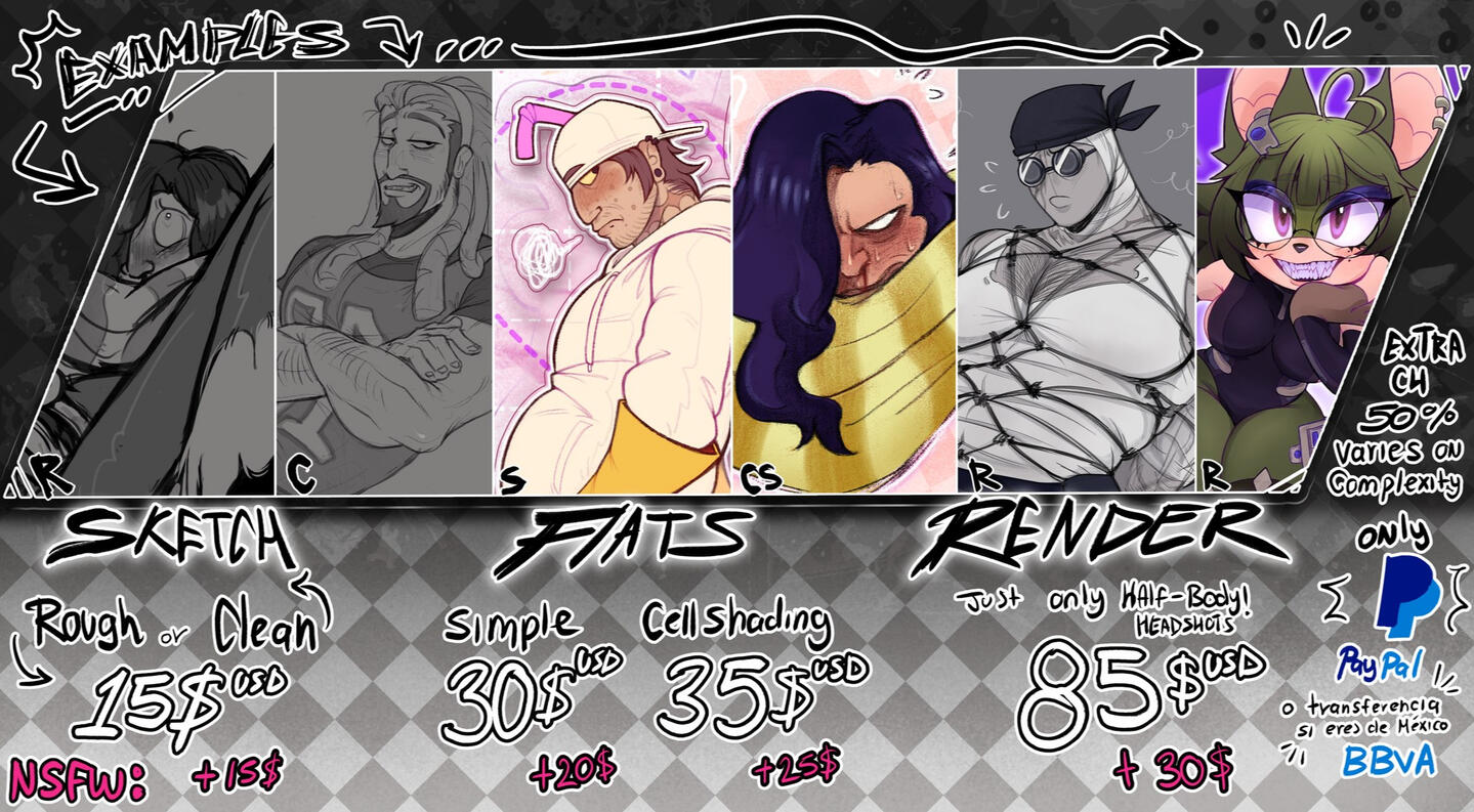 For the Payment, ONLY PAYPAL/KO-FI, in USD/MEX (peso mexicano); Si eres de Mรฉxico puedo aceptar via transferencia bancaria.
